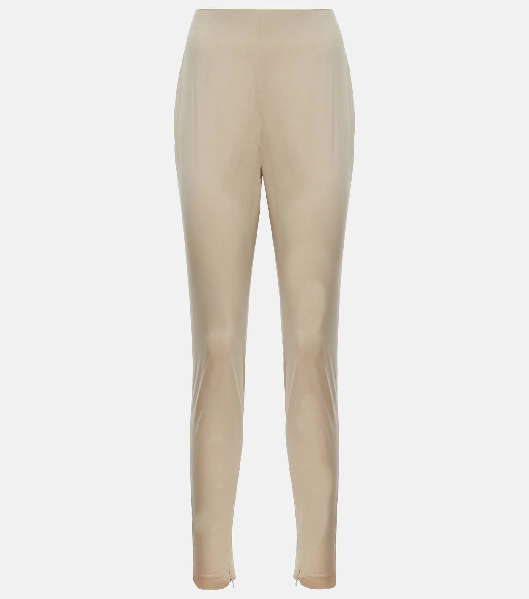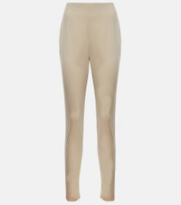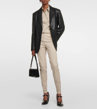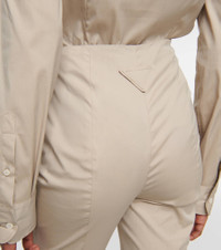 Prada applies their masterful craftsmanship to these pants. They’re a slim style made in Italy from stretchy cotton-blend material for all-day comfort. Product Details - Material: 78% cotton, 18% polyamide, 4% elastane - Made in Italy - Closure: zipped side, invisible zipper - Designer color name: Calce - Care instructions: dry clean - Item number: P00786965 Size & Fit - True to size - Semi-sheer - Slim-leg - High-waisted - The model seen in the picture is 178cm-5'10" and wearing a size IT 40
