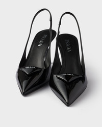 These pointy patent leather slingback pumps with contemporary allure embody refined, feminine elegance. The iconic shape of the triangle logo, reinterpreted with a three-dimensional leather ornament, embellishes the upper and inspires the geometric lines of the heel. - Product code: 1I901M_XUW_F0002_F_DD75 - Screen-printed leather triangle logo - Leather sole with metal lettering logo - Varnished heel, height 75 mm - Imported MATERIALS Main material: Calfskin