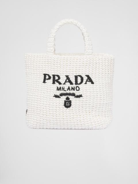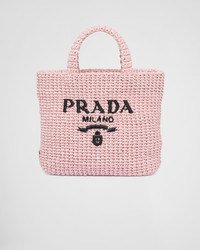 This crochet tote bag with a soft, deconstructed design boasts a light and summery mood. The embroidered lettering logo decorates the front, while the emblematic triangle in enameled metal embellishes the side. - Product code: 1BG422_2A2T_F0E18_V_OOL - Raffia-effect yarn - Crochet workmanship - Embroidered lettering logo on the front and enameled metal triangle logo on the side - Unlined - Imported Height: 24cm Width: 24cm Length: 8cm MATERIALS Main material: Viscose