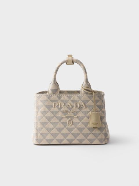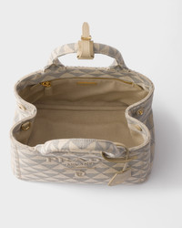 Reinterpreted with touches of urban charm, this bag with an iconic design embodies a casual yet sophisticated style. The fabric bag is embellished with a geometric jacquard motif and lettering logo embroidered on the front. The removable shoulder strap completes the versatile accessory with leather details. - Product code: 1BG464_2FKL_F04OW_V_8OX - Fabric handles - Detachable, adjustable logo-print tape shoulder strap. Maximum length cm 105 cm - Minimum length 66 cm - Maximum drop 54 cm - Minimum drop 35 cm - Metal hardware - Embroidered logo on the front and enameled metal triangle logo on the key ring - Snap closure on the sides - Cotton lining with two pockets, including one with zipper - With purse feet - Imported Height: 19cm Width: 26cm Length: 15cm MATERIALS Main material: Cotton