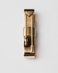 The rediscovery of jewelry archetypes continues, reinterpreted in form and meaning according to Prada's unique codes. The bow, an eternal and delicate symbol, is presented with pure, simple lines that define this recycled yellow gold brooch, an expression of refined, modern femininity. - Product code: 1JS134_2GNJ_F0056 - 750 Yellow Gold (18kt) - Laser-engraved logo on the side - Pin closure on the back - Made in Italy - Each step of Prada's responsible gold and diamond production is verified and traceable thanks to Aura Blockchain technology. - Imported MATERIALS Gold 750