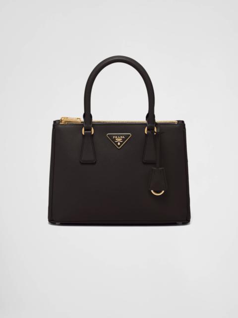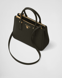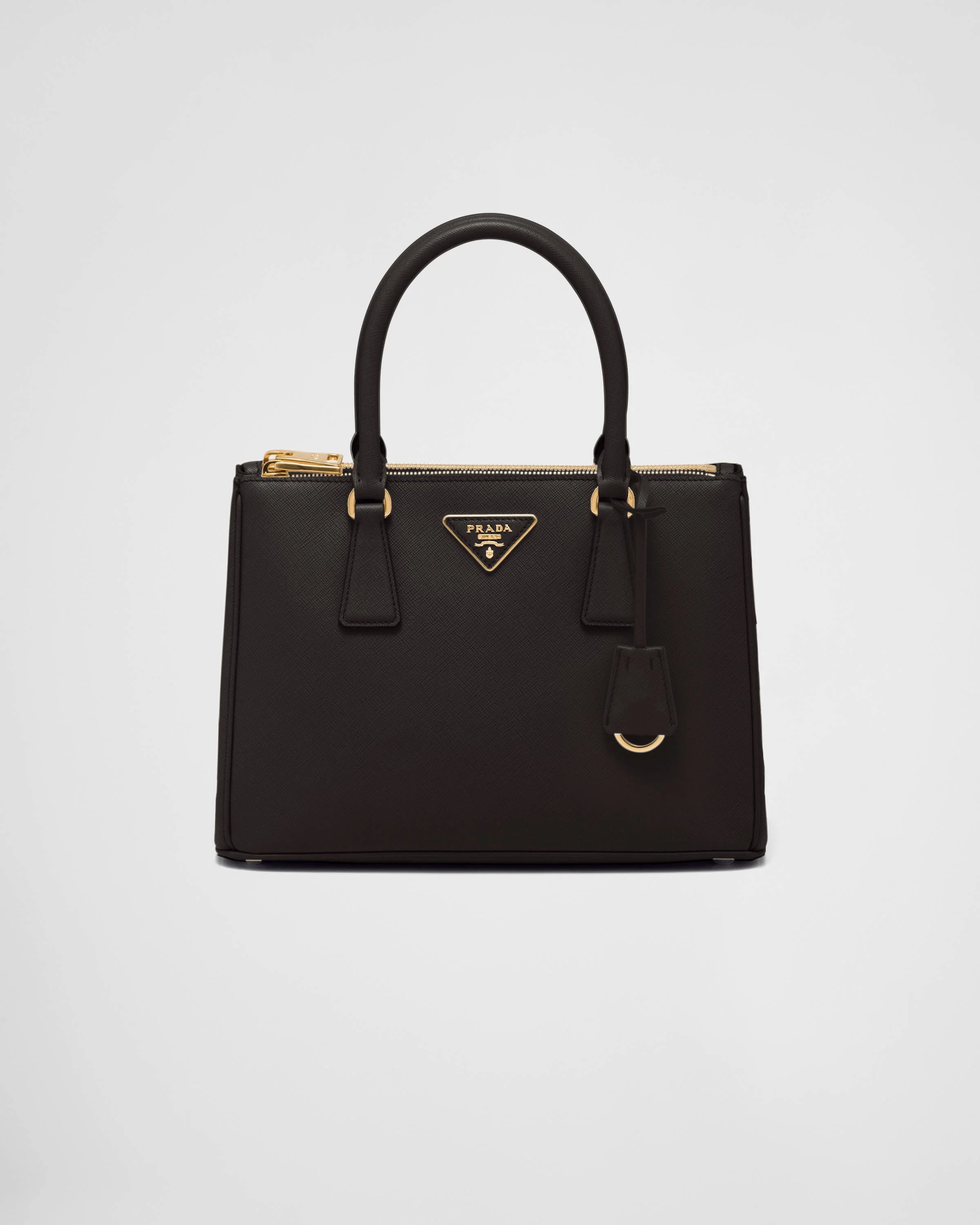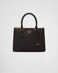 Production of the Prada Galleria bag, composed of 83 pieces, is an authentic fusion between industrial precision and the refined accuracy of craftsmanship that can only be performed by hand. The design is clean and elegant yet innately pragmatic, an aesthetic language blending form and function that combines history and modernity. Originating the definition of "timeless", the Galleria bag has become a hallmark of Prada's identity in the twenty-first century. The accessory, presented in the medium version, is made of iconic Saffiano, a calf leather patented by Mario Prada that is resistant to scratches and water and defined by its crosshatch texture. - Product code: 1BA863_NZV_F0002_V_EOO - Leather handles - Detachable, adjustable leather shoulder strap. Max. length: 120 cm - Min. length: 110 cm - Max. drop length: 60 cm - Min. drop length: 55 cm - Removable leather key ring - External zipper pockets - Metal hardware - Leather triangle with metal lettering logo on the front - Snap closure on the sides - Logo-print nylon lining with two pockets, including one with zipper - With purse feet - Imported Height: 19.5cm Width: 28cm Length: 12cm MATERIALS Main material: Calfskin