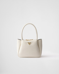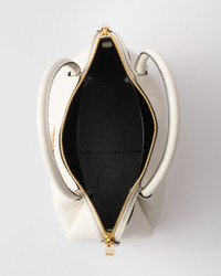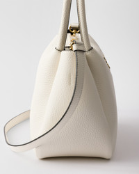 Contemporary and refined, this bag is crafted from textured leather with an inverted construction emphasizing its soft, rounded shape. The style, easy to carry by hand or over the shoulder, reveals a versatile soul, blending urban elegance and a sporty touch. - Product code: 1BC145_2DKV_F02EU_V_7NM - Leather handles - Adjustable and detachable logo-print woven tape shoulder strap, length 95 cm. Maximum length 107 cm - Minimum length 56 cm - Maximum drop 56 cm - Minimum drop 35 cm - Metal hardware - Metal lettering logo on the front - Zipper closure - Nappa leather lining with three compartments - Imported Height: 21cm Width: 23cm Length: 10cm MATERIALS Main material: Calfskin