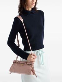 Pragmatic and refined, this shoulder bag has a sleek, modern design emphasized by soft leather with a unique glossy finish, a symbol of Prada's artisan know-how. The rectangular silhouette framed by an elegant strap detail is characterized by the nappa interior with center zipper pocket. The detachable, adjustable shoulder strap completes the versatile accessory decorated with the iconic enameled metal triangle logo. - Codice articolo: 1BH215_2CYR_F03ZN_V_OOO - Metal hardware - Enameled metal triangle logo on the front - Nappa and logo-print nylon interior with center zipper pocket and patch pocket - Importato
