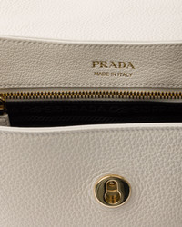 This sophisticated and pragmatic shoulder bag has a timeless, versatile design. The leather with a grainy finish and handcrafted details define a durable and refined accessory that comes with an adjustable shoulder strap and is decorated with the metal lettering logo. - Product code: 1BN022_2DKV_F0009_V_ONO - Leather handle, drop from 26 cm a 34 cm - Back pocket - Metal hardware - Metal lettering logo on the flap - Magnetic closure with flap - Logo-print nylon lining with zipper pocket - Imported Height: 14cm Width: 26cm Length: 9.5cm MATERIALS Main material: Calfskin