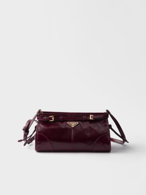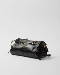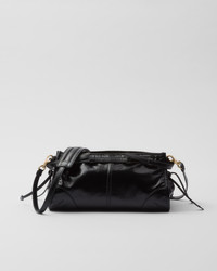 Pragmatic and refined, this shoulder bag has a sleek, modern design emphasized by soft leather with a unique glossy finish, a symbol of Prada's artisan know-how. The rectangular silhouette framed by an elegant strap detail is characterized by the nappa interior with center zipper pocket. The detachable, adjustable shoulder strap completes the versatile accessory decorated with the iconic enameled metal triangle logo. - Product code: 1BH215_2CYR_F0002_V_OOO - Detachable, adjustable leather shoulder strap with shoulder pad. Maximum length: 105 cm - Minimum length: 100 cm - Maximum drop: 55 cm- Minimum drop: 52 cm - Metal hardware - Enameled metal triangle logo on the front - Zipper closure - Logo-print nylon lining with zipper pocket - Imported Height: 14cm Width: 26cm Length: 12cm MATERIALS Main material: Calfskin