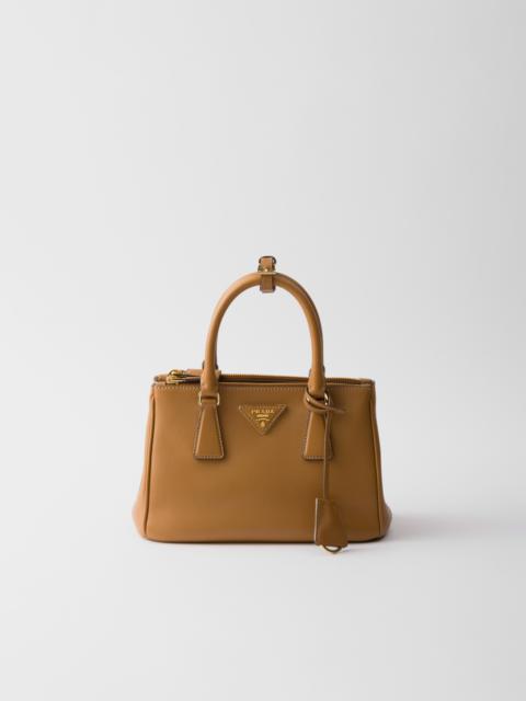 The sophisticated and timeless Prada Galleria bag combines the industrial precision and meticulous craftsmanship inherent in the brand's DNA. Composed of over 80 individual pieces assembled by hand, the style celebrates the historic store opened in 1913 in Galleria Vittorio Emanuele II of Milan. The leather accessory, presented in a refined small version, is completed with the emblematic triangle logo. - Product code: 1BA896_2CYS_F0002_V_YO0 - Leather handles - Adjustable and detachable leather shoulder strap. Maximum length 120 cm - Minimum length 110 cm - Maximum drop 60 cm - Minimum drop 55 cm - Removable leather keyring - External zipper pockets - Metal hardware - Leather triangle with metal lettering logo on the front - Snap closure on the sides - Nappa lining with two pockets, including one with zipper - With leather purse feet - Imported Height: 16.5cm Width: 24.5cm Length: 11cm MATERIALS Main material: Calfskin