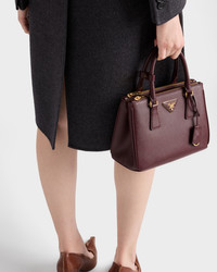 The Prada Galleria bag, which exemplifies Prada's centennial excellence in luxury leather goods, becomes a reflection of the brand's modernity and stylistic identity that seeks to interpret kaleidoscopic contemporaneity through a pragmatic design and structured lines. The accessory, presented in the small version, is made of iconic Saffiano leather that was patented by the founder of the brand and features a crosshatch texture and waxed finish. The Prada Galleria bag, named after the historic Prada store opened by Mario Prada in 1913 in Galleria Vittorio Emanuele II in Milan, expresses the quintessence of the brand's timeless elegance. - Product code: 1BA896_NZV_F0007_V_EOO - Leather handles - Detachable, adjustable leather shoulder strap. Max. length: 120 cm - Min. length: 110 cm - Max. drop length: 60 cm - Min. drop length: 55 cm - Removable leather key ring - External zipper pockets - Metal hardware - Leather triangle with metal lettering logo on the front - Snap closure on the sides - Logo-print nylon lining with two pockets, including one with zipper - With purse feet - Imported Height: 16.5cm Width: 24.5cm Length: 11cm MATERIALS Main material: Calfskin