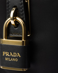This compact bag with a refined silhouette that embodies the essence of Prada codes is made of Re-Nylon with leather details. The gold-tone metal hardware and the elegant small lock embellishing the closure complete the versatile, modern accessory. - Product code: 1BC234_2C8Q_F0002_V_NDO - Adjustable woven tape and leather shoulder strap. Maximum length 110 cm - Minimum length 90 cm - Maximum drop 55 cm - Minimum drop 45 cm - Metal hardware - Enameled metal triangle logo on the front - Zipper closure with small lock - Logo-print Re-Nylon lining with two pockets, including one with zipper - Imported Height: 13cm Width: 27cm Length: 4cm MATERIALS Main material: Recycled polyamide