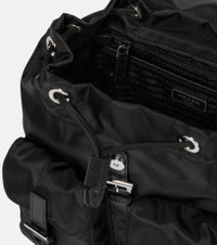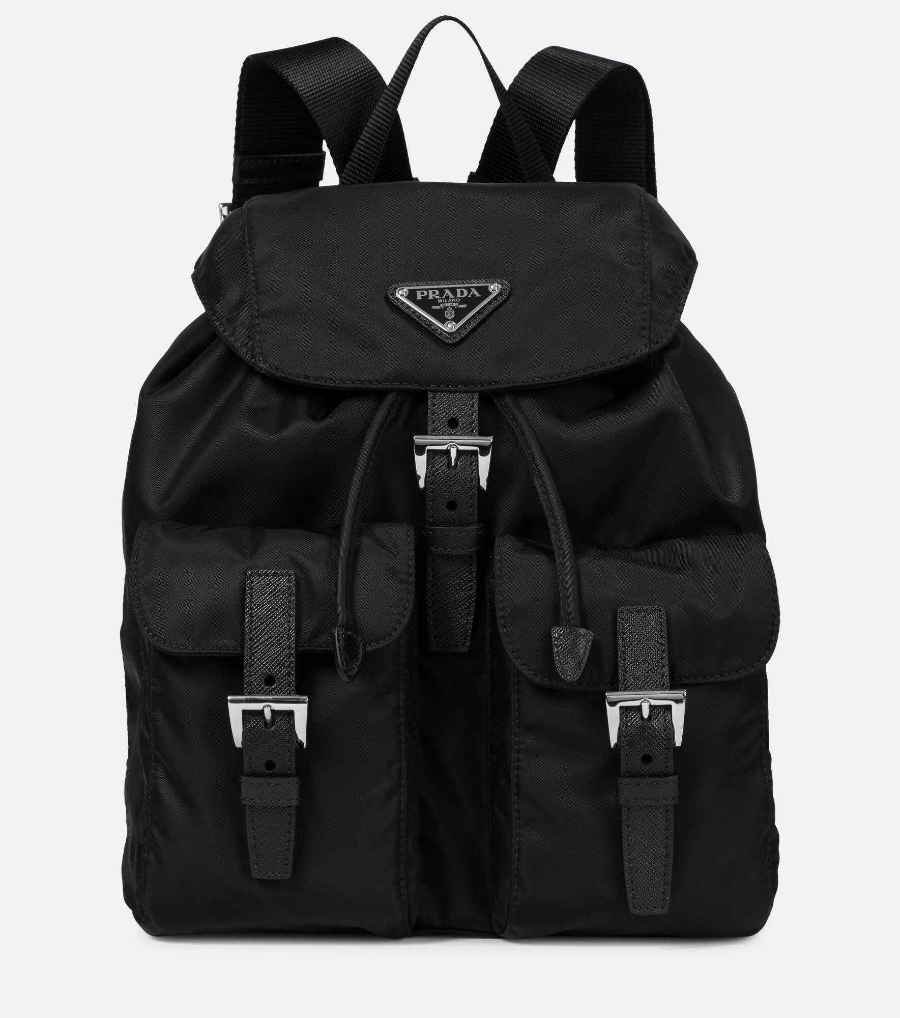 Opt for an iconic Prada look with the label’s nylon backpack, which is just as coveted now as it was in the early ‘90s. Crafted in Italy, this design balances pragmatism with style; multiple pockets, buckle fastenings, and adjustable shoulder straps make it fully functional. It's finished with steel hardware – including the triangle logo plate – and saffiano leather trim, another signature of the label. Product Details - Material: fabric - Lining: fabric - Made in Italy - Designer color name: Nero - Adjustable shoulder straps - Internal details: internal slot pocket, internal zipped pocket - Hardware color: silver - Closure: drawstring top, push-clasp fastening - Front slot pocket - Includes: box - Trim: leather - Item number: P00526489 Size & Fit - Height 28cm-11" - Width 24cm-9.5" - Depth 12.5cm-5" - Min. length shoulder strap 50cm-19.5" - Max. length shoulder strap 85cm-33.5"
