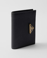 This luxurious Saffiano leather wallet is sheer elegance in a compact form. The accessory has several document pockets, credit card slots and bill compartment. Metal logo. - Product code: 1MV204_QHH_F0002 - Snap fastener - Enameled metal triangle logo - One bill compartment - Three card slots - Two internal pockets - Internal coin pocket with flap - Moire and Saffiano leather lining - Imported Height: 11.2cm Width: 8.5cm MATERIALS Main material: Calfskin