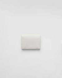 This luxurious Saffiano leather wallet is sheer elegance in a compact form. The accessory has several document pockets, credit card slots and bill compartment. Metal logo. - Product code: 1MV204_QHH_F0009 - Snap fastener - Enameled metal triangle logo - One bill compartment - Three card slots - Two internal pockets - Internal coin pocket with flap - Moire and Saffiano leather lining - Imported Height: 11.2cm Width: 8.5cm MATERIALS Main material: Calfskin