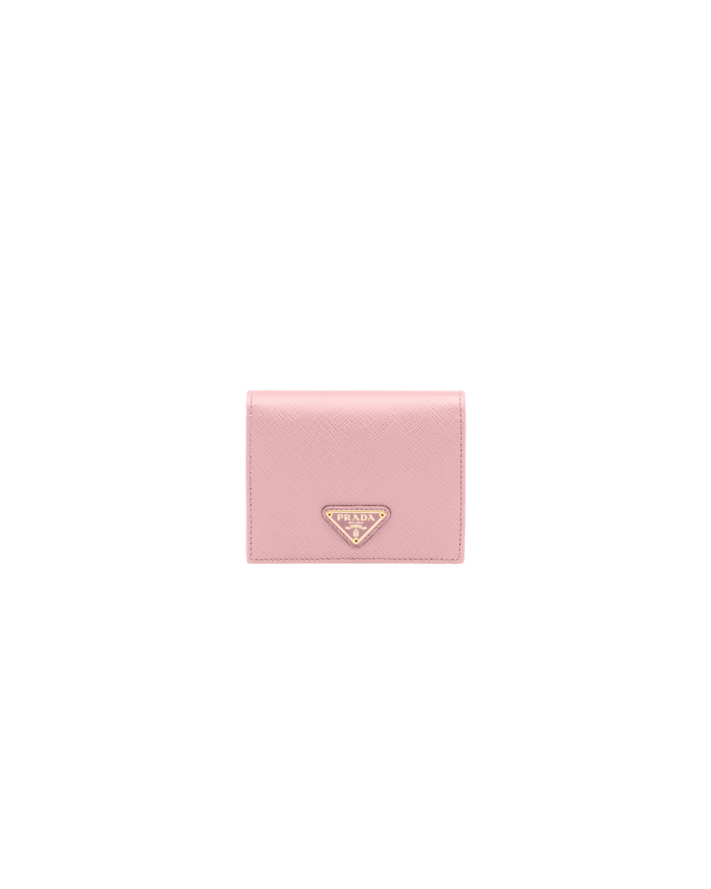 This luxurious Saffiano leather wallet is sheer elegance in a compact form. The accessory has several document pockets, credit card slots and bill compartment. Metal logo. - Product code: 1MV204_QHH_F0924 - Snap fastener - Enameled metal triangle logo - One bill compartment - Three card slots - Two internal pockets - Internal coin pocket with flap - Moire and Saffiano leather lining - Imported Height: 11.2cm Width: 8.5cm MATERIALS Main material: Calfskin