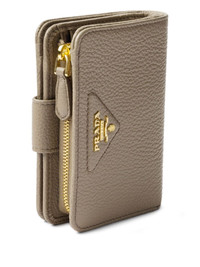 small textured wallet Highlights - Taupe - Zip-around design - Logo hardware - Single compartment - Flap closure - Interior card slots Composition Outer: Calf Leather 100% Lining: Leather 100%, Fabric 100% SIZE & FIT Measurement LENGTH 4.72 in(12 cm) WIDTH 3.34 in(8.5 cm)