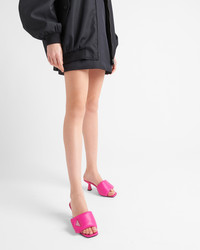 These sandals with an ultra-feminine and minimalist attitude are made of soft nappa leather that is lightly padded for a modern and elegant effect. The triangle logo stands out on the front, decorating the accessory. - Product code: 1XX654_2DL8_F03GG_F_065 - Enameled metal triangle logo - Leather sole - Metal lettering logo - 65 mm varnished heel - Imported MATERIALS Leather