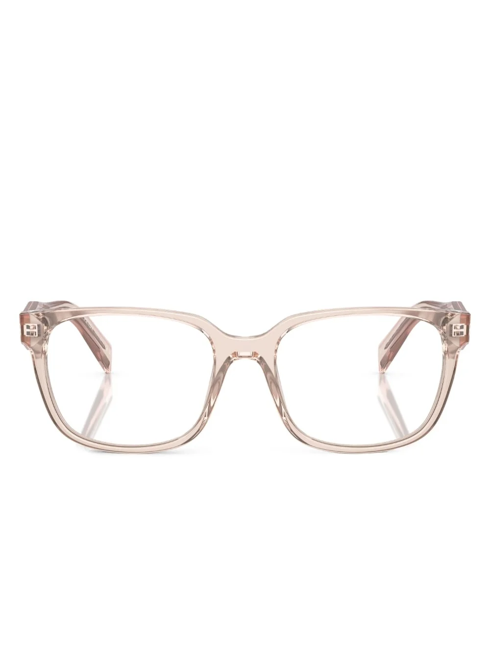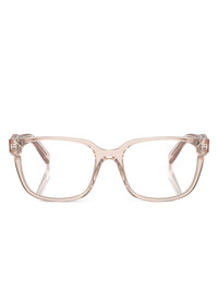 square-frame glasses light pink acetate clear lenses square frame logo print at the arm straight arms curved tips These glasses come with a protective case. All glasses from FARFETCH are sold as non-prescription frames. Composition Acetate 100%