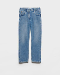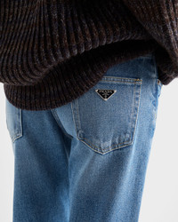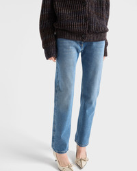 These straight-leg jeans with a low-rise waist and classic cut are treated for a used finish that enriches the distinctive texture of denim. The five-pocket style is completed with the iconic enameled metal triangle logo. - Product code: GFP469_16PK_F0V3N_S_OOO - Used denim treatment - Straight cut - Low-rise waist - Hem width: 19.5 cm, Size: 25 - Button fly - Contrasting stitching - Rounded front pockets with coin pocket - Patch pocket on the back - Total length 100cm, Size: 25 - Triangle logo - Imported - The model is 178 cm tall and wears a size 38 Height: 100cm MATERIALS Main material: 100% cotton