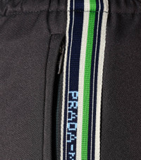 With a structured straight-leg silhouette that's just a little relaxed, these gray trackpants from Prada reflect the athleisure trend with an elevated dose of tailoring. A comfortable feel, easy fit, and low-key cool look temper this pair's smart attitude. Dress yours up or down with a T-shirt or luxe knit. Product Details - Material: 90% polyester, 10% cotton - Designer color name: Ematite - Pockets: side slit pockets - Elasticated waistband - Item number: P00335220 Size & Fit - Fits large to size - we recommend trying one size smaller - Wide-leg - The model seen in the picture is 178cm-5'10" and wearing a size IT 38