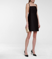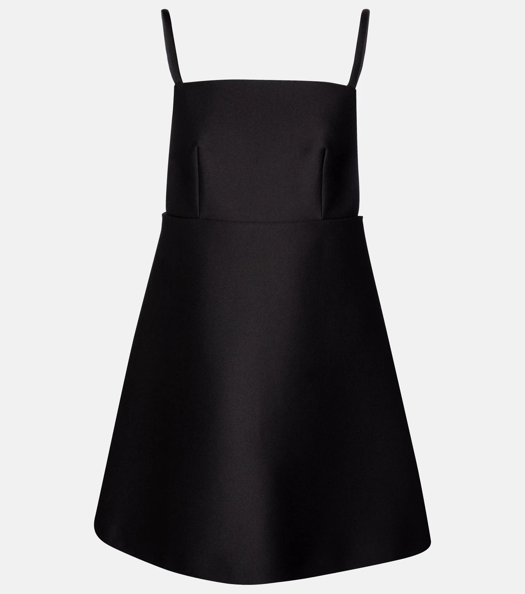 Miuccia Prada's eye for minimalist yet striking lines shines through in this black minidress. Made in Italy from structured cady, which incorporates wool and stretch fibres for added softness, it has an A-line silhouette with slender shoulder straps and a silk-blend lining that sits gently against the skin. Swing a Cleo bag next to yours. Product Details - Made in Italy - Material: 58% polyamide, 39% wool, 3% elastane - Closure: zipped side, hook fastening - Designer color name: Black - Lining: 60% cupro, 40% silk, fully lined - Care instructions: dry clean - Item number: P00528233 Size & Fit - True to size - Low back - Designed for a loose fit - The model seen in the picture is 178cm-5'10" and wearing a size IT 40