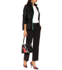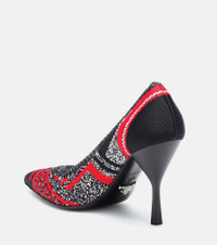 Prada's stretch-knit pumps will add a playful accent to any outfit thanks to their lust-worthy red and black pattern and dramatically pointed toe. Made in Italy, they stand on a modest heel with the brand insignia displayed in black and white on the outer rim. Infuse a sporty aesthetic into tailored outfits by pairing these with black trousers and a blazer. Product Details - Lining: leather - Upper: fabric - Sole: leather insole, leather and rubber sole - Toe shape: pointed toe - Made in Italy - Designer color name: Black/Red - Item number: P00369243 Size & Fit - True to size - Stretchy fabric - European sizes - 9,5cm-3.5" heel (size EU 38)