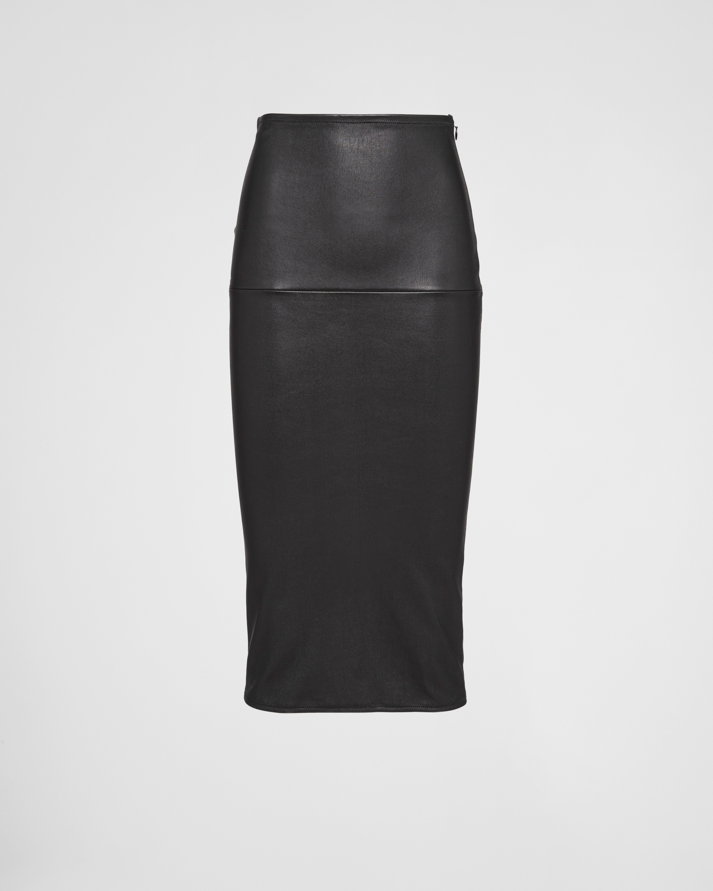 This slim-fit skirt made of soft nappa leather is enhanced by the brand's iconic enameled metal triangle logo, first introduced in 1913 on trunks designed by Mario Prada. - Product code: 51833_12UW_F0002_S_231 - Unlined - Slim-fit silhouette - Side zipper closure - Enameled metal triangle logo - Imported - The model is 179 cm tall and wears a size 38 Height: 75cm MATERIALS Leather