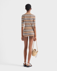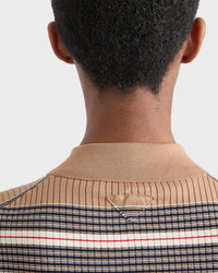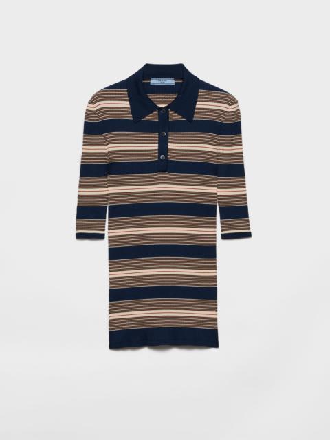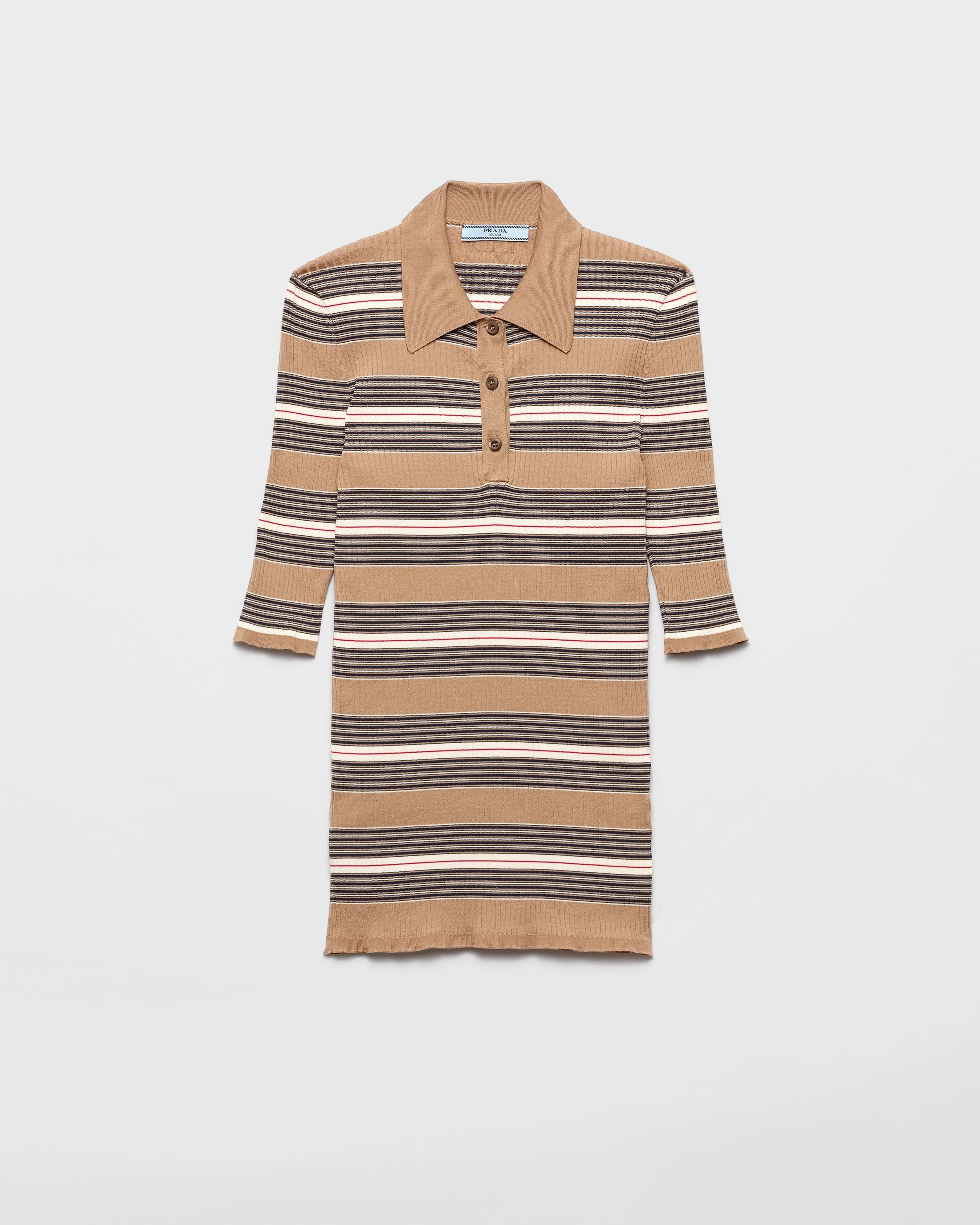 A stripe motif with vintage allure animates this slim fit polo shirt made of ribbed knit cotton. The tonal triangle logo decorates the refined garment. - Product code: P24R2U_17KJ_F0040_S_OOO - Short sleeves - Ribbed knit - Slim fit - Raglan shoulder - Knit triangle logo - Front button closure - Imported - The model is 177 cm tall and wears a size 38 Height: 65cm MATERIALS Main material: 100% cotton