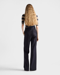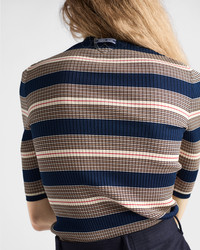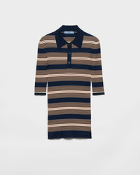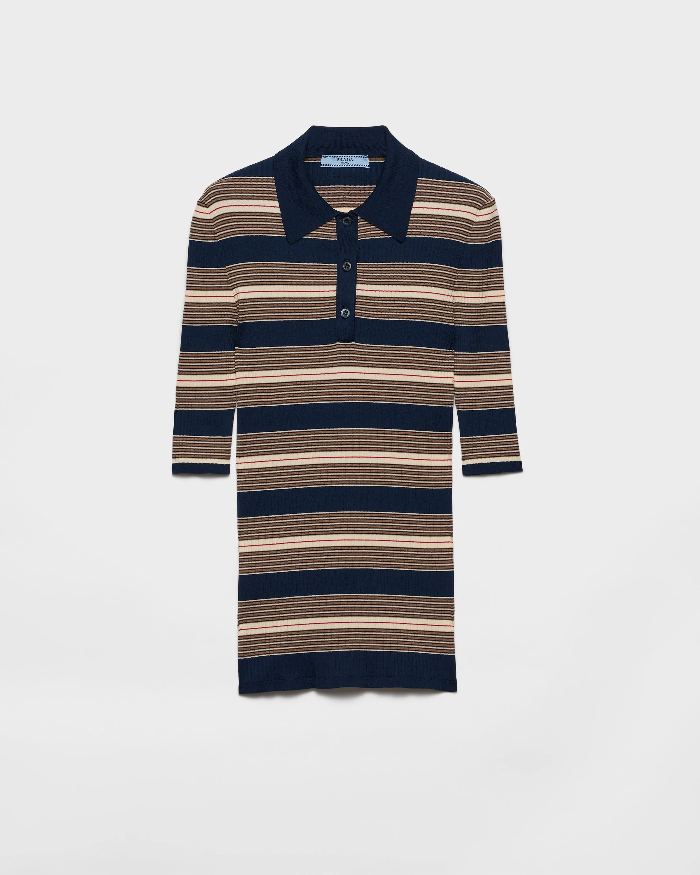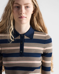 A stripe motif with vintage allure animates this slim fit polo shirt made of ribbed knit cotton. The tonal triangle logo decorates the refined garment. - Product code: P24R2U_17KJ_F0124_S_OOO - Short sleeves - Ribbed knit - Slim fit - Raglan shoulder - Knit triangle logo - Front button closure - Imported - The model is 180 cm tall and wears a size 38 Height: 65cm MATERIALS Main material: 100% cotton