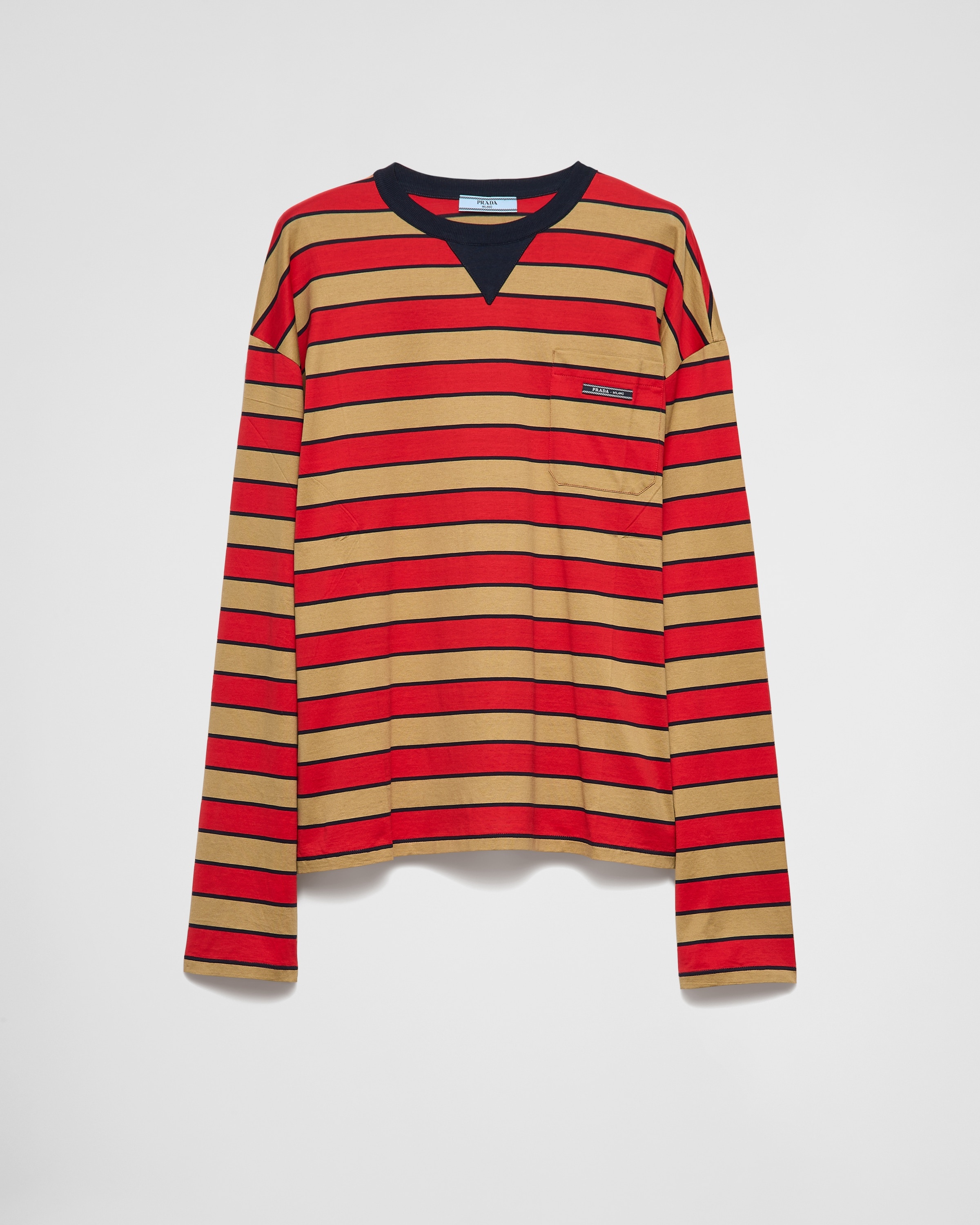 Oversized lines define this long-sleeved tee that combines sporty style with vintage allure. The chromatic contrasts of the stripe motif animates the light, casual garment made of lisle cotton. - Product code: 39604_16S0_F0J68_S_OOO - Oversized fit - Ribbed knit crew neck - Long sleeves - Patch pocket on the chest - Sartorial logo label - Imported - The model is 178 cm tall and wears a size 38 Height: 68cm MATERIALS Main material: 100% cotton