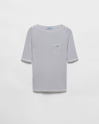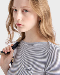 With its boat neckline and small breast pocket, this viscose sweater celebrates simple femininity. It is discreet, elegant and refined. - Product code: P24R2H_17IM_F0UB0_S_OOO - Short sleeves - Plain knit - Slim fit - Regular shoulder - Ribbed knit cuffs and hem - Embroidered logo - Breast pocket - Imported - The model is 178 cm tall and wears a size 38 Height: 57cm MATERIALS Main material: 4% polyester 96% viscose