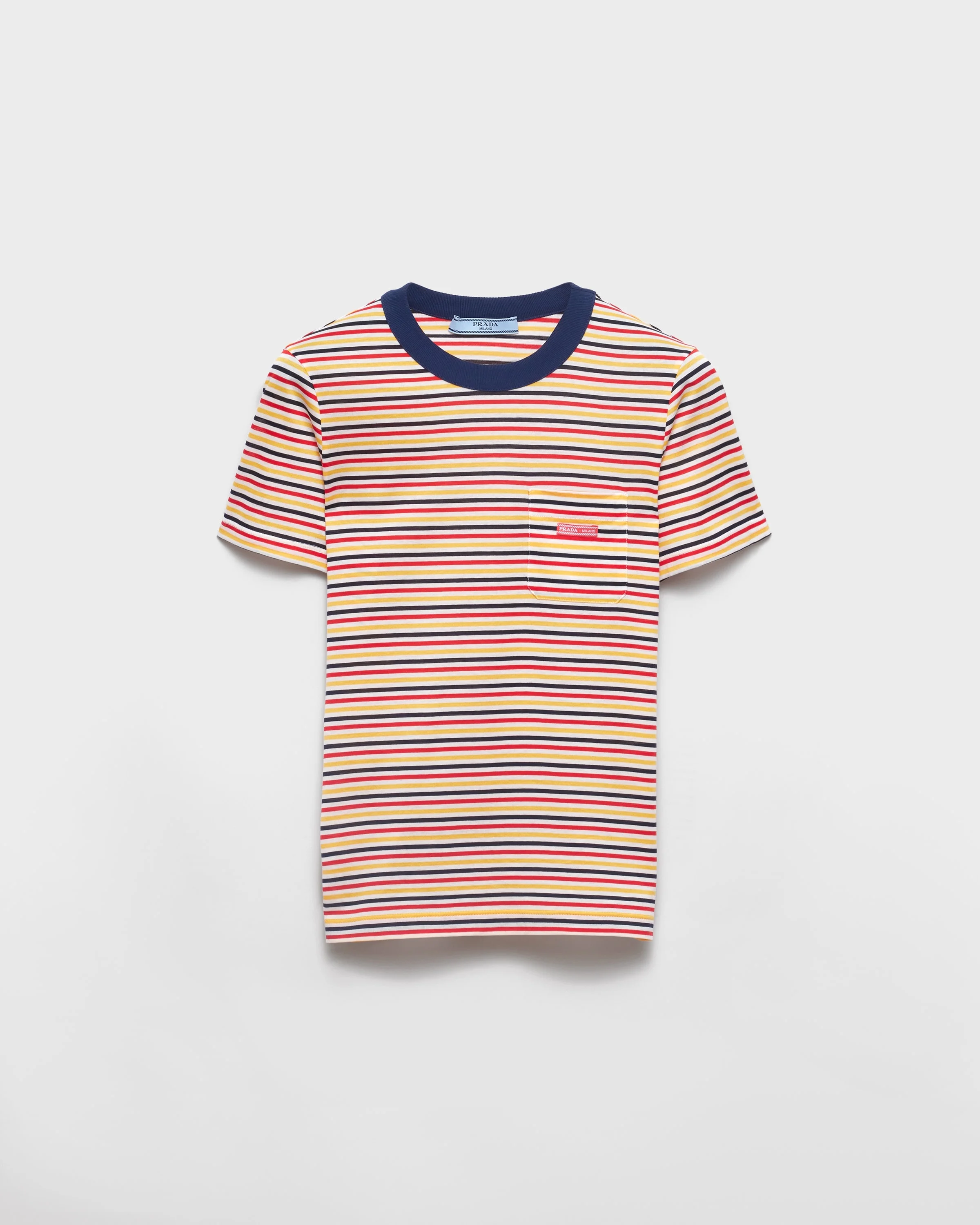 This tee with a classic cut is made of lisle cotton that gives the garment a light feel and refined style. The casual design is animated by a multicolored stripe motif in contrast with the crew neck. - Product code: 39605_16S1_F059I_S_OOO - Straight fit - Crew neck - Short sleeves - Sartorial logo label - Imported - The model is 176 cm tall and wears a size 38 Height: 56cm MATERIALS Main material: 100% cotton