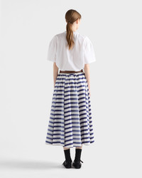 The full silhouette and lightweight striped fabric evoke summer and the charm of the nautical world. - رمز المنتج: P108W_16U7_F0008_S_OOO - Full silhouette - Front closure with drawstring - Fabric triangle logo - The model is 178 cm tall and wears a size 38 الارتفاع: 85cm MATERIALS الخامة الأساسية: 100% cotton