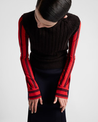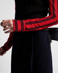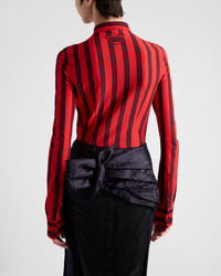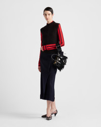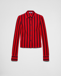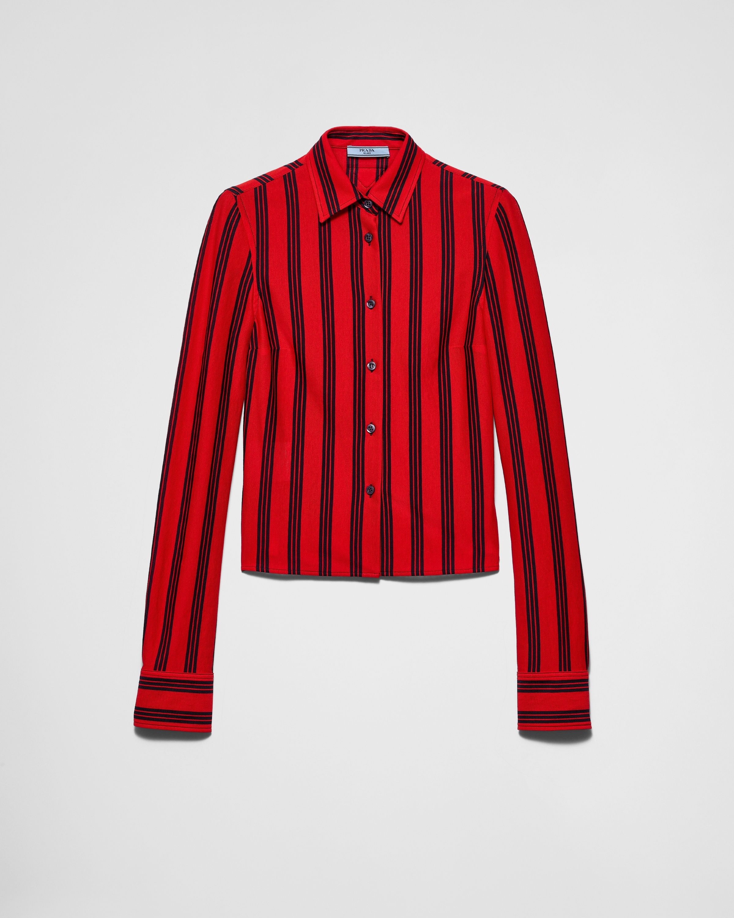 The sophisticated, feminine allure of this pique shirt is constructed with classic details that define the contoured, fitted silhouette animated by a stripe motif. - Codice articolo: P468H_1NMS_F0011_S_OOO - Slim fit - Shirt collar - Front button closure - Sleeves with shirt cuffs - Fabric triangle logo - Importato - The model is 178 cm tall and wears a size 38 Altezza: 52cm MATERIALS Cotton