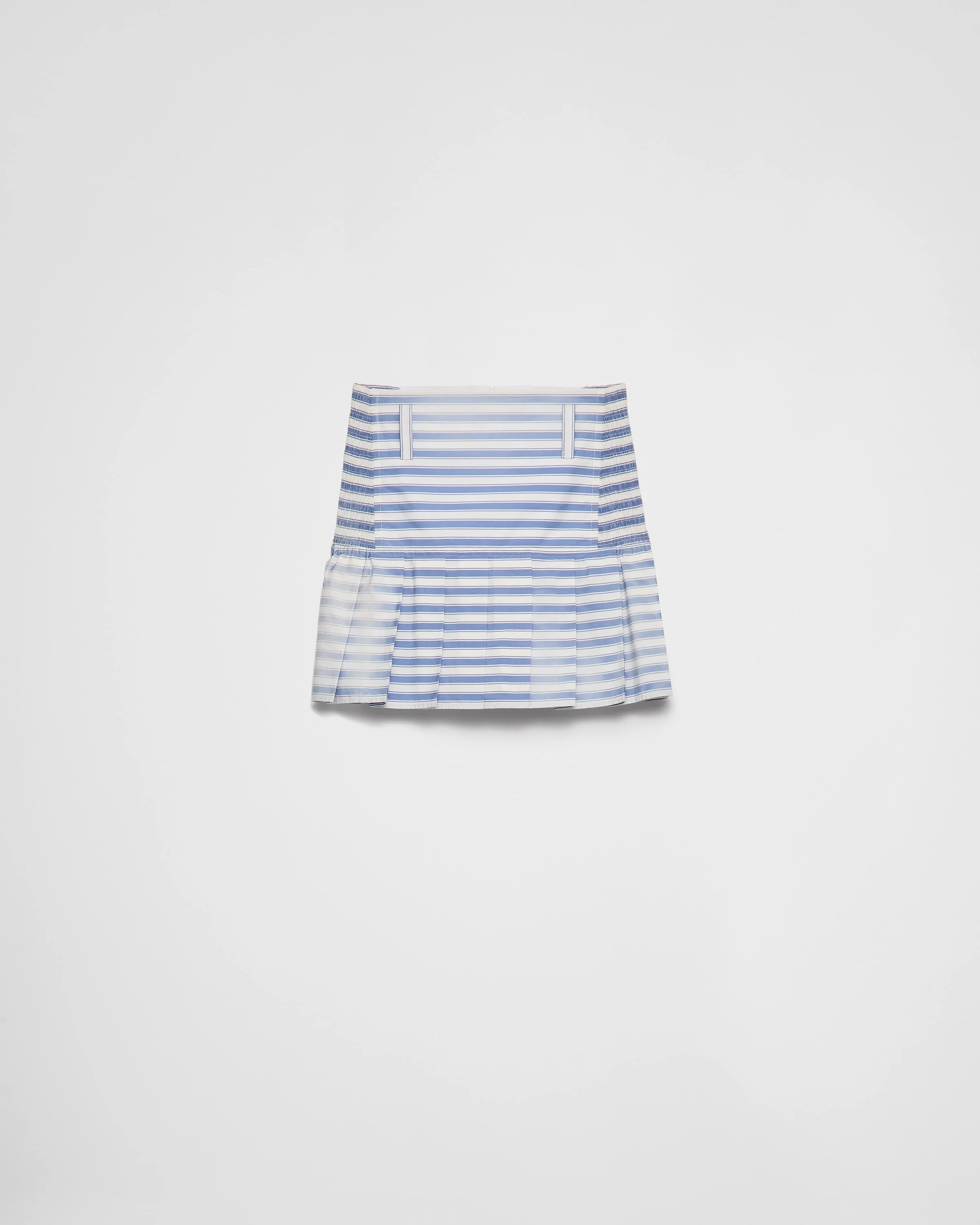 Pleated workmanship and a retro stripe motif inspired by the nautical world meet the tailored modernism that Prada creates in this design with timeless charm. - Product code: P103WR_16QE_F0237_S_OOO - «Stripe» print - Pleated style - Unlined garment - Center back zipper closure - Elasticized detail on the waist - Imported - The model is 180 cm tall and wears a size 38 Height: 32cm MATERIALS Main material: 100% cotton