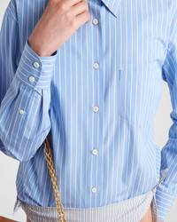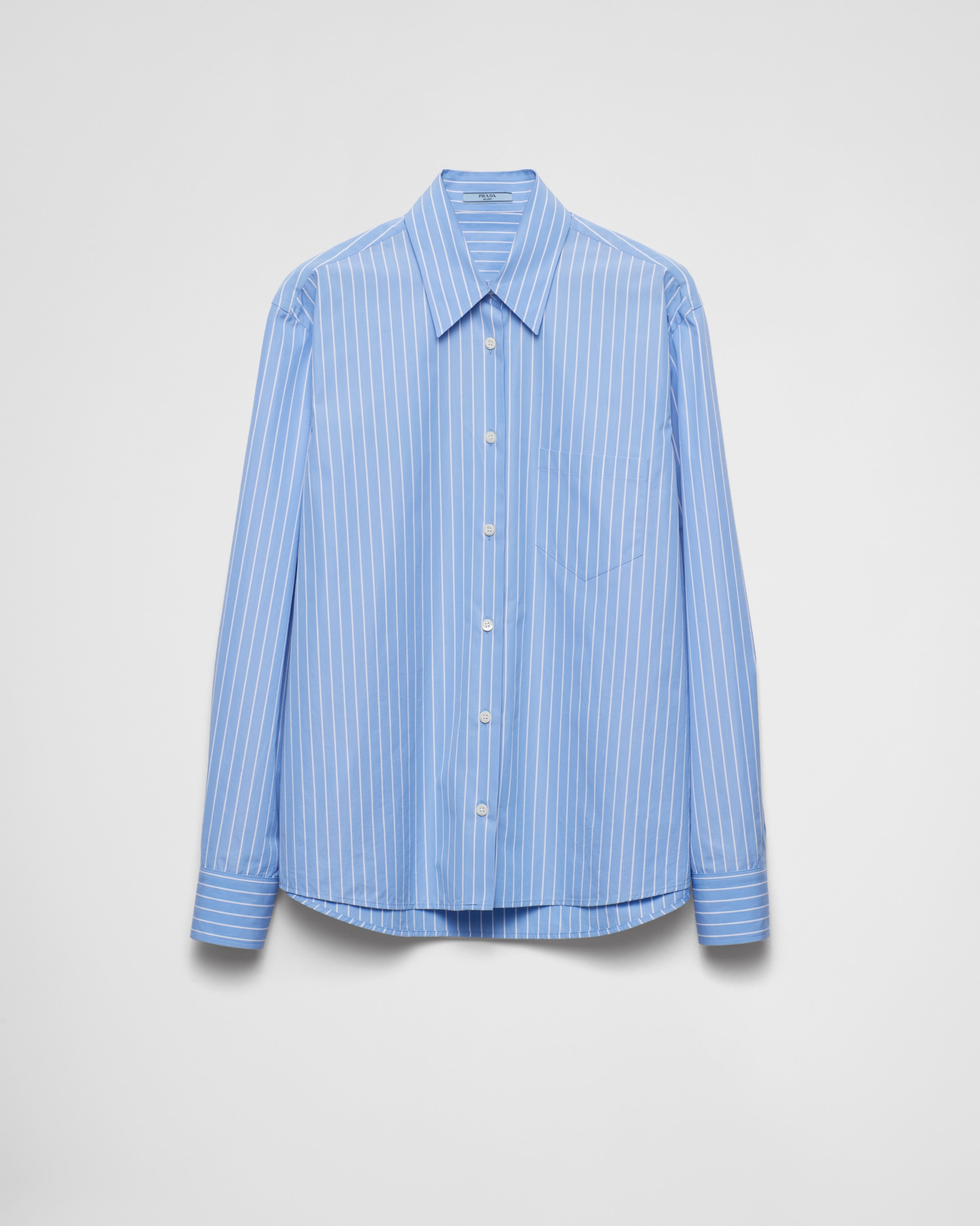 This poplin shirt with a classic menswear silhouette is animated by a stripe motif. The style, characterized by the patch pocket on the chest, is enhanced by the emblematic fabric triangle logo reinterpreted with a conceptual design. - Product code: P436H_15DT_F0013_S_OOO - Menswear fit - Shirt collar - Front button closure - Sleeves with shirt cuffs - Patch pocket on the front - Triangle logo with sartorial logo label - Imported - The model is 178 cm tall and wears a size 38 - Height: 69cm MATERIALS Cotton
