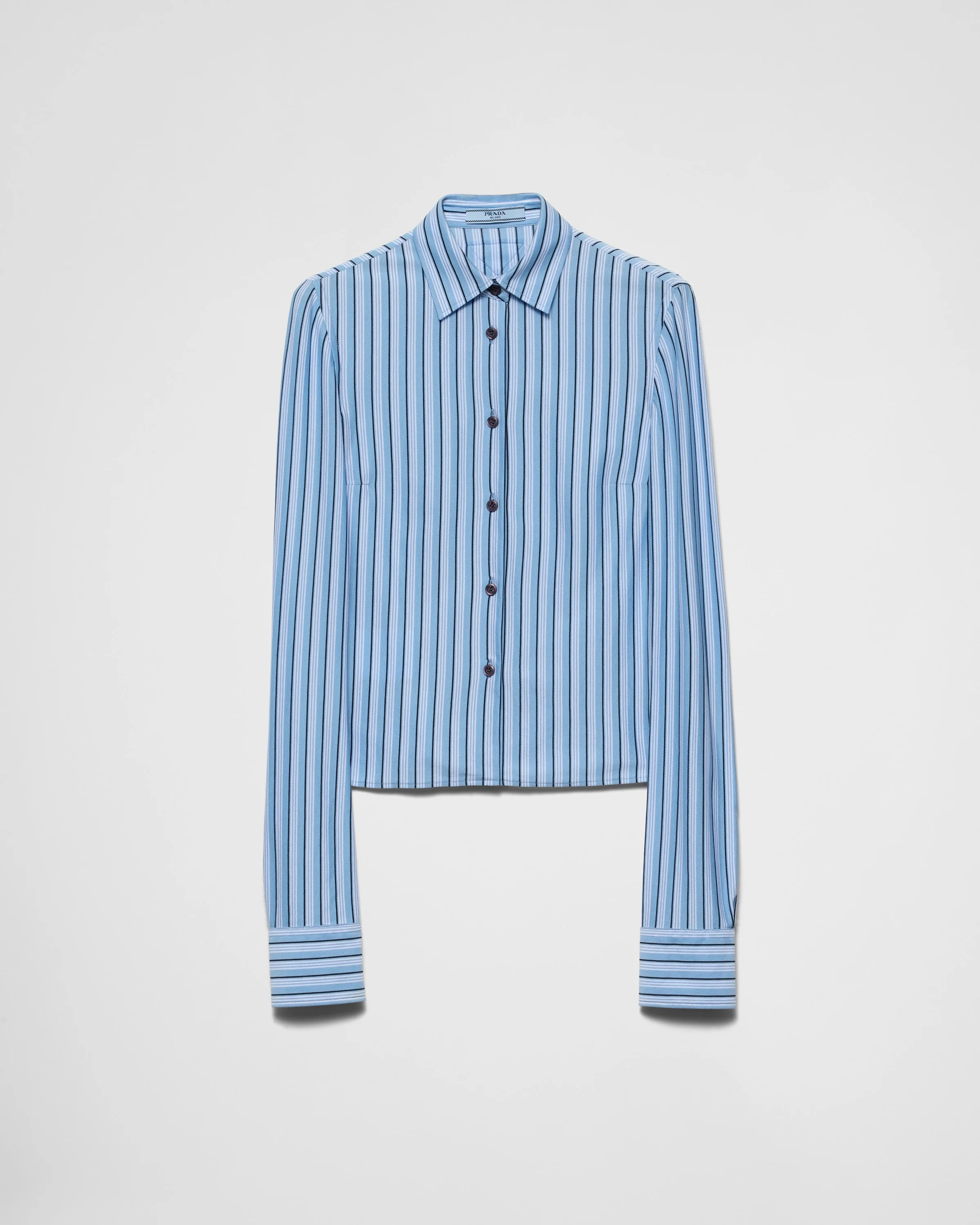 The sophisticated, feminine allure of this pique shirt is constructed with classic details that define the contoured, fitted silhouette animated by a stripe motif. - Product code: P468H_1NMS_F0076_S_OOO - Slim fit - Shirt collar - Front button closure - Sleeves with shirt cuffs - Fabric triangle logo - Imported - The model is 180 cm tall and wears a size 38 Height: 52cm MATERIALS Cotton