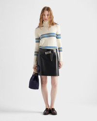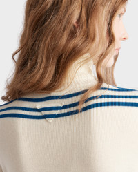 This wool turtleneck features a stripe motif that adds a dynamic touch to a classic silhouette. The sleek geometric shape of the triangle logo adds its signature to the refined garment. - Product code: P26561_17IL_F042I_S_OOO - Long sleeves - Plain knit - Boxy fit - Ribbed knit cuffs, turtleneck and hem - Knit triangle logo - Imported - The model is 176 cm tall and wears a size 38 Height: 56cm MATERIALS Main material: 100% virgin wool