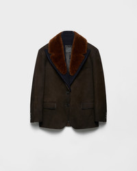 Suede and shearling caban jacket