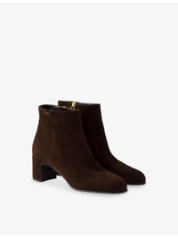 PRODUCT DETAILS - Prada suede boots - 100% leather - Zip at side - Pointed toe, foiled logo print, mid-heel, brushed texture, ankle length - Heel height 55mm - Shaft height 12cm - Specialist leather clean - Upper: 100% leather - Lining: 100% leather - Sole: 100% rubber Ref: R04579838