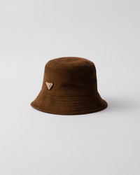 The iconic bucket hat, reinterpreted season after season, comes in suede that gives the urban accessory a refined touch. - Product code: 1HC137_008_F0324 - Enameled metal triangle logo - Cotton lining - Imported MATERIALS Main material: Lambskin
