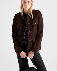 This jacket with a utility-inspired design combines refined materials and construction with a casual, functional attitude. Suede enhances the lines of the style enriched with artisanal treatments for a natural aged effect that gives the garment dimension and character. - Product code: 58A270_162O_F0201_S_OOO - Lined garment - Straight fit - Front button closure - Stand-up collar - Straight sleeves and buttoned cuffs - Flapped patch pockets - Leather triangle logo - Vintage treatment - Imported - The model is 180 cm tall and wears a size 38 Height: 68cm MATERIALS Main material: Lambskin