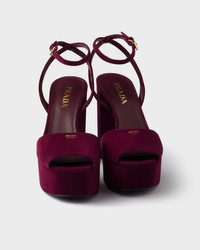 The design of these sandals combines timeless feminine lines and bold details. This suede shoe is defined by its platform and column heel, while the ankle strap and screen-printed lettering logo complete it with a note of contemporary elegance. - Product code: 1XP48B_008_F0007_F_E115 - Strap with logo-engraved metal buckle - Screen-printed logo - Leather and rubber sole with metal lettering logo - Leather-covered heel, height 115 mm - Leather-covered platform, height 40 mm - Imported MATERIALS Main material: Goatskin