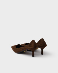 These suede pumps have a soft, tapered silhouette. The pointy toe style is characterized by a deconstructed design completed with elastic on the heel and an architectural heel inspired by the geometric shape of the iconic triangle. - Product code: 1I188O_008_F0324_F_D055 - Screen-printed logo - Leather sole with rubber heel layer and metal lettering logo - Leather-covered heel, 55 mm - Imported MATERIALS Main material: Lambskin