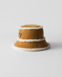Iconic details and winter moods come together in this reinterpretation of the distinctive bucket hat in shearling with a soft, voluminous silhouette. - Product code: 1HC137_2C5A_F0151 - Enameled metal triangle logo - Imported MATERIALS Main material: Lambskin