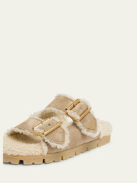 Suede Shearling Lined Dual-Buckle Slide Sandals