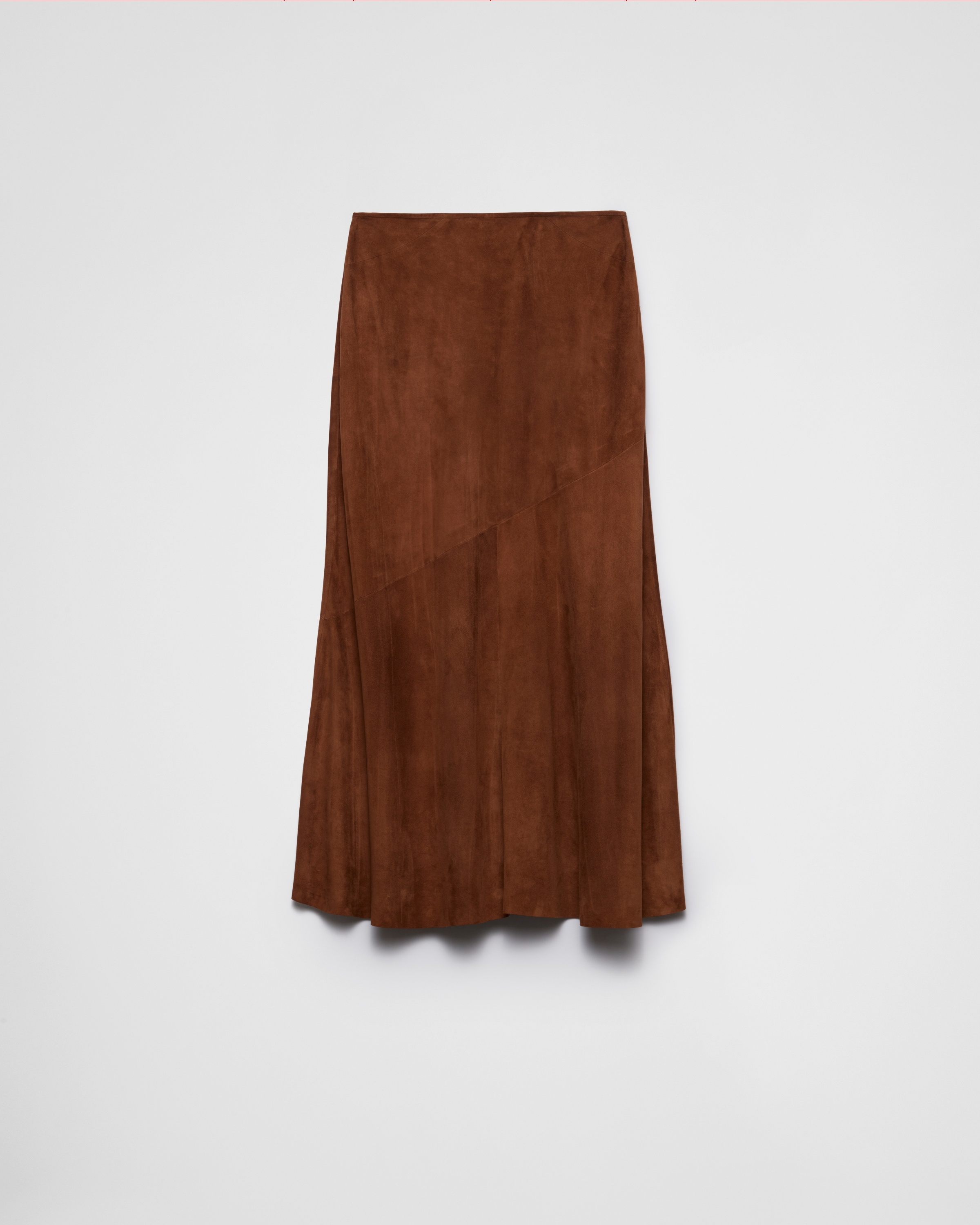 This suede skirt with a sophisticated design combines vintage influences and sleek lines. The style with a soft, flared silhouette is enriched with an elegant detail of small buttons on the back. - 商品品番: 51882_15B9_F0BW5_S_OOO - Unlined - Flared fit - Side zipper closure - Back with small buttons - With slip - インポート - The model is 178 cm tall and wears a size 38 高さ: 80cm MATERIALS Leather
