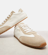 Suede-trimmed leather sneakers