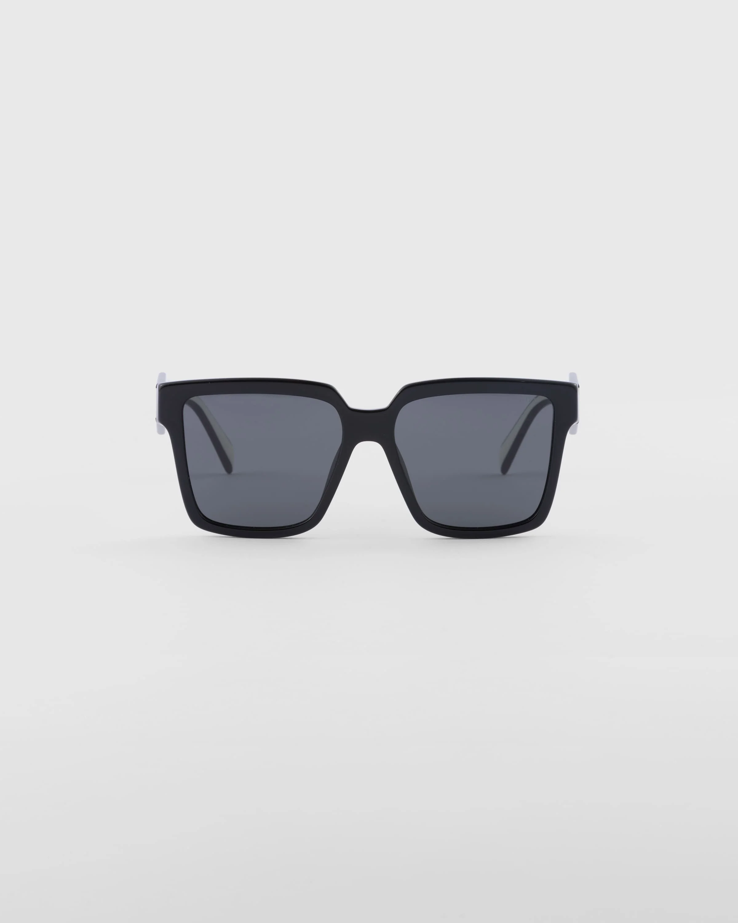 Sunglasses characterized by a rectangular frame and thick rims. Refined bonded acetate layers in contrasting colors on the geometric temples add a sophisticated and contemporary touch. Prada lettering logo. - Product code: SPR24Z_E1AB_F05S0_C_056 - Acetate frame front in Black - Frame compatible with graduated lenses - 100% UVA / UVB protection - Standard fit - Lens-nose-temple measurement: 56-16-140 mm - Article comes with dedicated packaging - Other available colors - Imported MATERIALS Acetate
