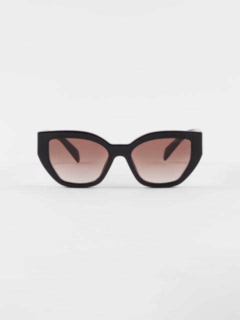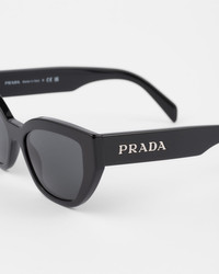 Acetate sunglasses with a feminine cat-eye design. The front with geometric rims is paired with chunky temples decorated with the Prada lettering logo. - Product code: SPRA09_E1AB_F05S0_C_053 - Acetate frame front - Color: Black - -Frame compatible with graduated lenses - 100% UVA / UVB protection - Standard fit - Lens-nose-temple measurement: 53-18-145 mm - Article comes with dedicated packaging - Other available colors - Imported MATERIALS Acetate