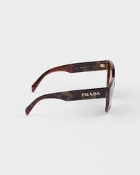 Acetate sunglasses characterized by an oversized design with a slight cat-eye silhouette. The large, geometric front is paired with chunky temples decorated with the Prada lettering logo. - Product code: SPRC04_E22F_FE90Q_C_052 - Recycled bio-acetate frame front - Color: Forest Green Tortoiseshell - Frame compatible with graduated lenses - 100% UVA / UVB protection - Standard Fit - Lens-nose-temple measurement : 52-22-145 mm - Article comes with dedicated packaging - Other colors available - Imported MATERIALS Acetate