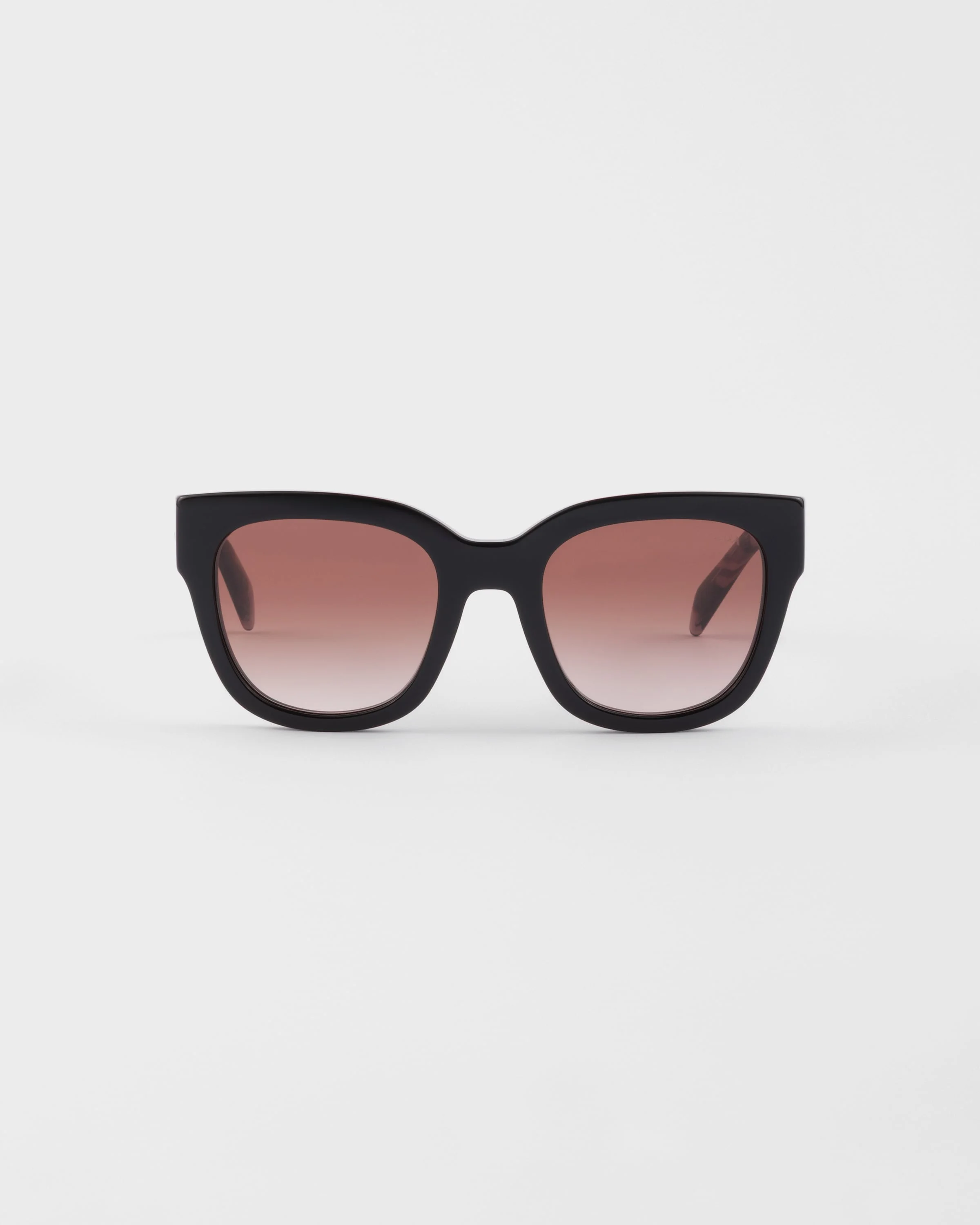 Acetate sunglasses characterized by an oversized design with a slight cat-eye silhouette. The large, geometric front is paired with chunky temples decorated with the Prada lettering logo. - Product code: SPRC04_E28F_FE90P_C_052 - Recycled bio-acetate frame front - Color: Black + Orchid Pink Tortoiseshell - Frame compatible with graduated lenses - 100% UVA / UVB protection - Standard Fit - Lens-nose-temple measurement: 52-22-145 mm - Article comes with dedicated packaging - Other colors available - Imported MATERIALS Acetate